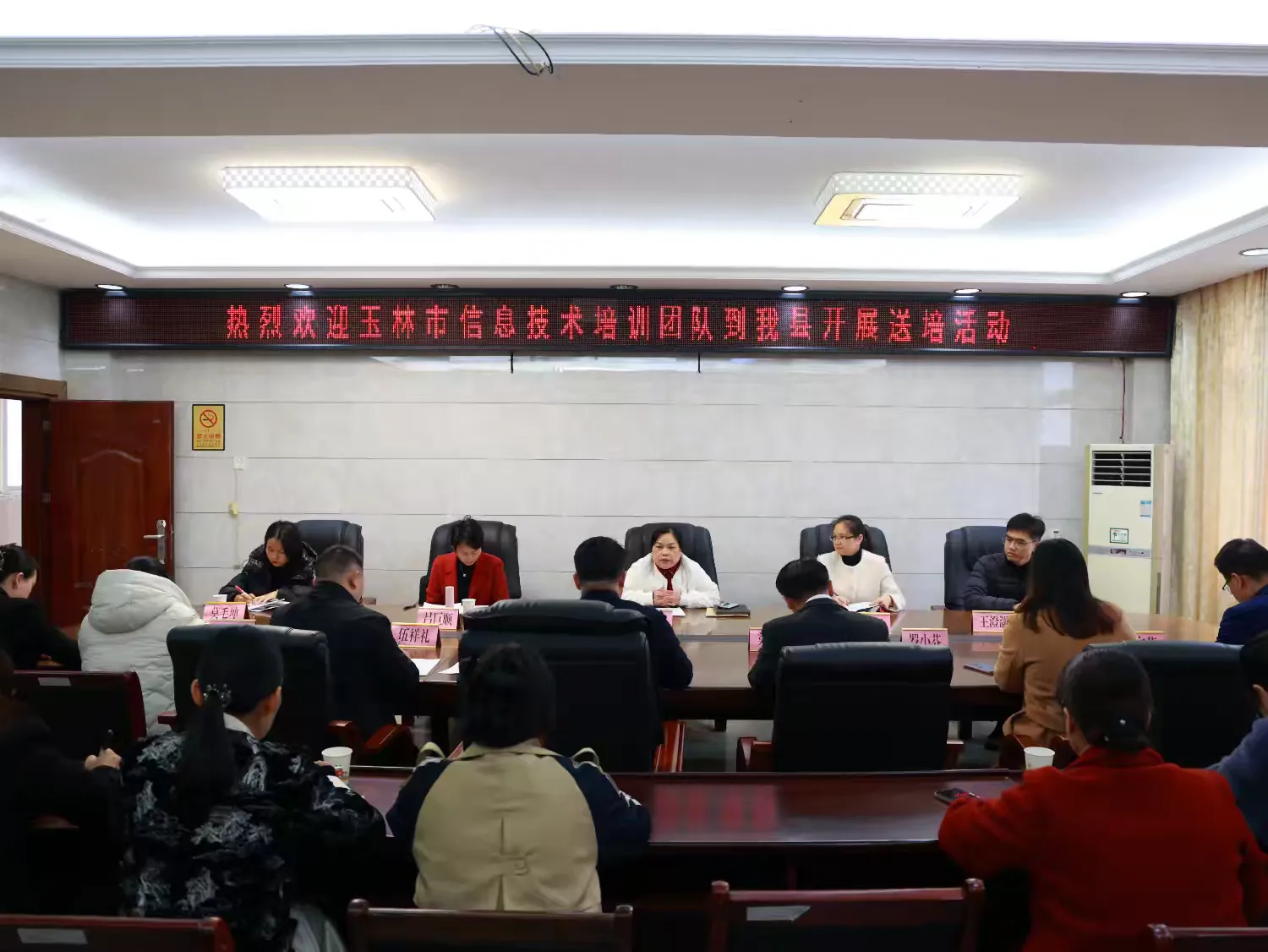 在教育信息化飞速发展的当下,提升教师信息技术应用能力成为推动教育高质量发展的关键。2025年1月8日—9日,2023年“市培计划”玉林市统筹项目—中小学教师信息技术应用能力引领培训项目的第一小组成员:唐冰副主任、吕巨顺副校长、曾庆凤主任、莫毛坤老师深入兴业县、深入学校开展调研、送培活动,为兴业的教育注入新活力。兴业县教育局为了确保“市培计划”的调研活动、送培活动的顺利开展,精心组织,制定了详细的方案。