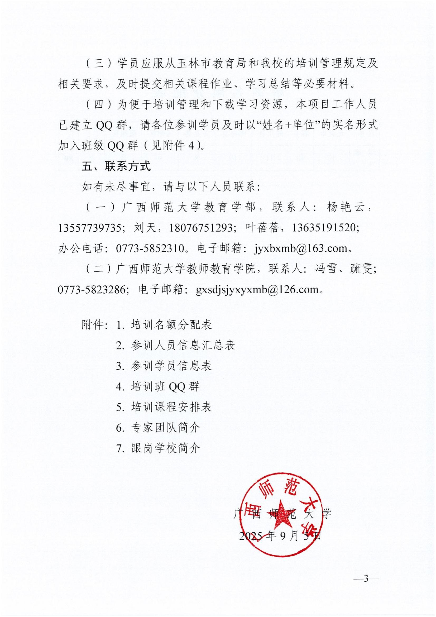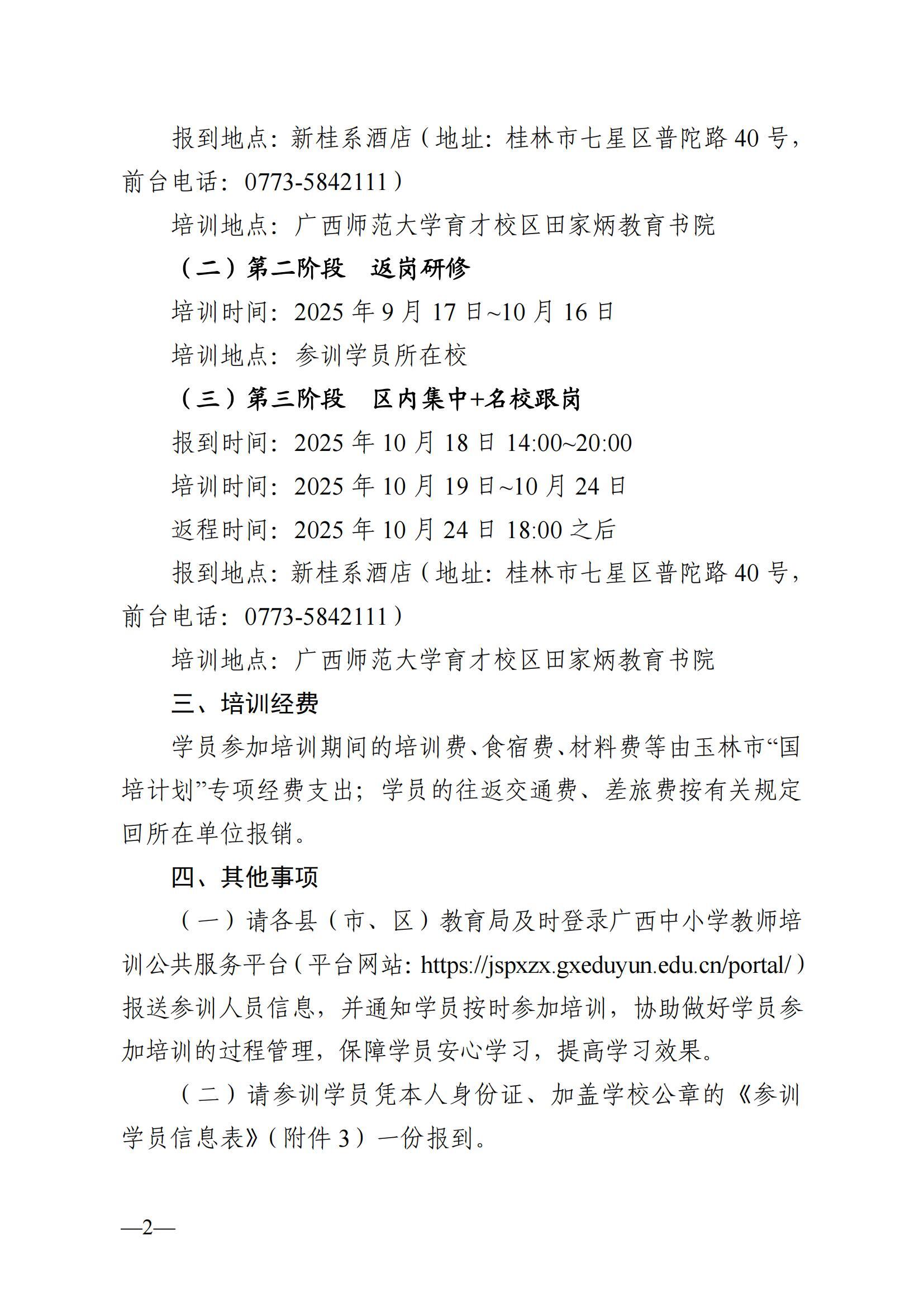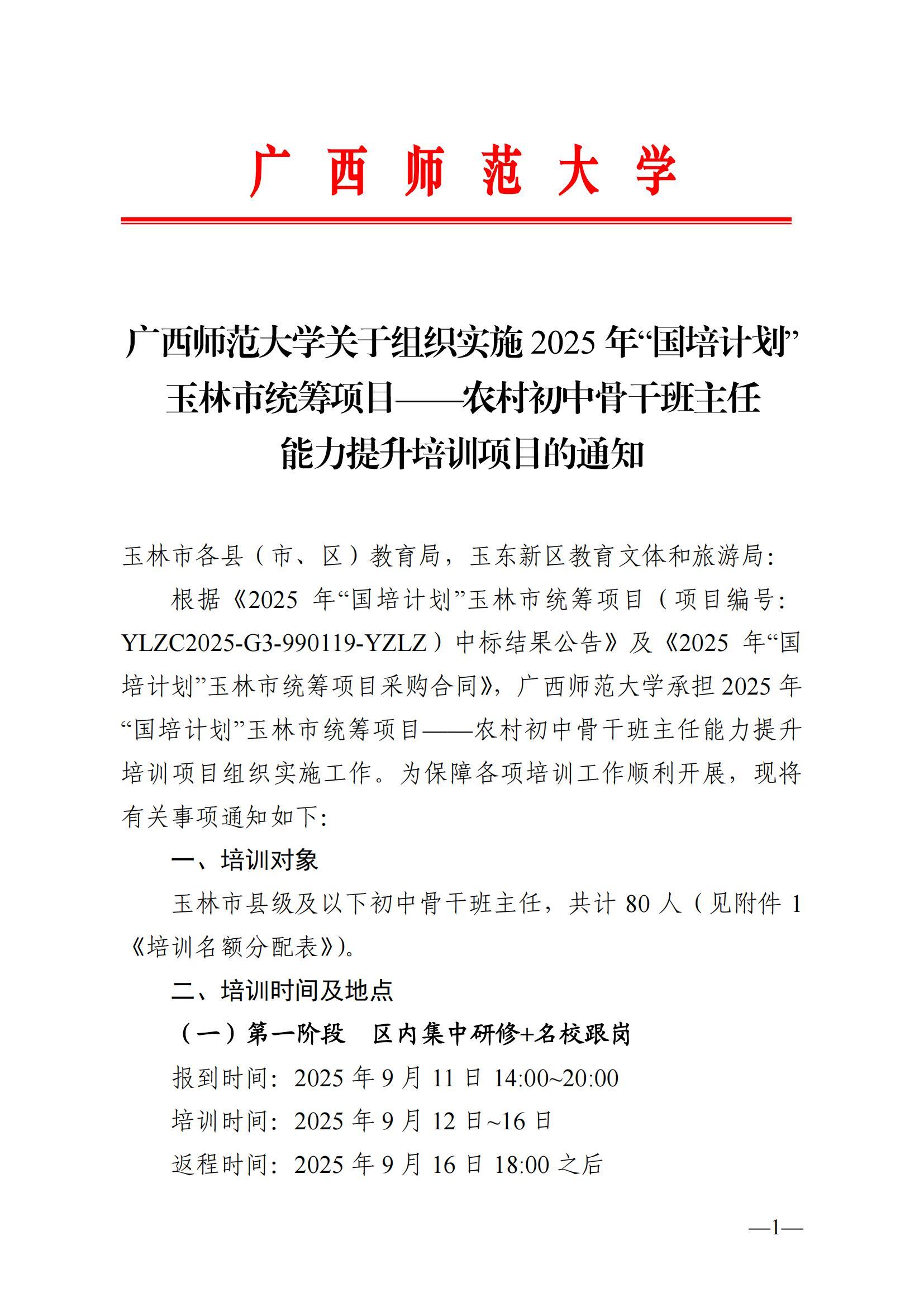 关于组织实施2025年“国培计划”玉林市统筹项目——农村初中骨干班主任能力提升培训项目的通知