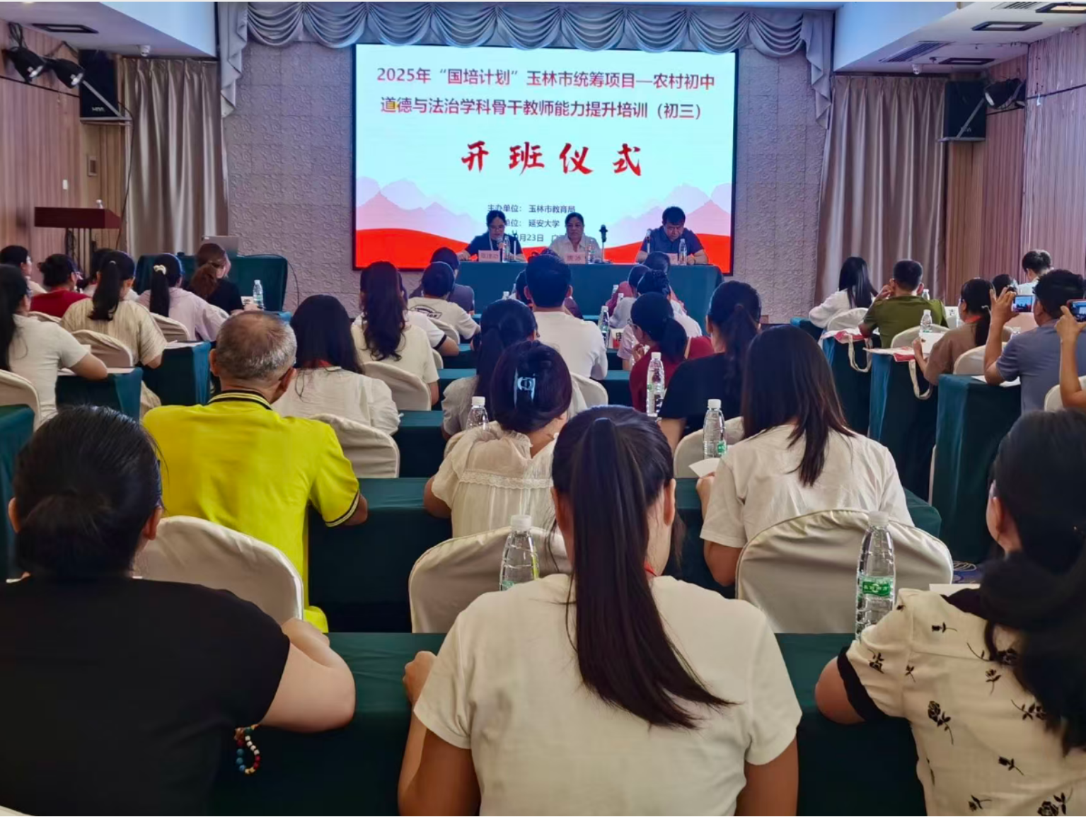 为深入贯彻落实立德树人根本任务,切实提升玉林市初三道德与法治学科骨干教师的专业素养和教学实践能力,2025年9月23日,由玉林市教育局统筹、延安大学承办的2025年“国培计划”玉林市统筹项目——农村初中道德与法治学科骨干教师能力提升培训班(初三)在南宁市顺利举行。玉林市教师培训中心副主任唐冰,延安大学文学院党委委员,思政专员任永平教授,以及来自玉林市各县市区的60名培训学员共同参加了开班典礼。