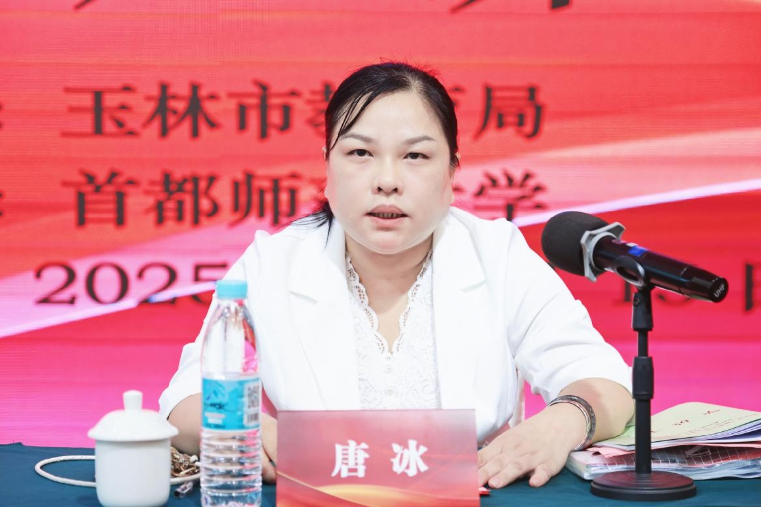 玉林市教师培训中心副主任唐冰作开班讲话。唐冰副主任指出,在当前基础教育深刻变革的背景下,农村骨干教师是提升教育质量、促进教育公平的关键力量。她对参训教师提出三点要求:一要潜心研学,力求实效,做到学以致用;二要严守培训纪律,端正学风,展现玉林教师良好形象;三要发挥示范引领作用,将培训成果转化为推动教学改革的具体行动,辐射带动区域教师共同成长。
