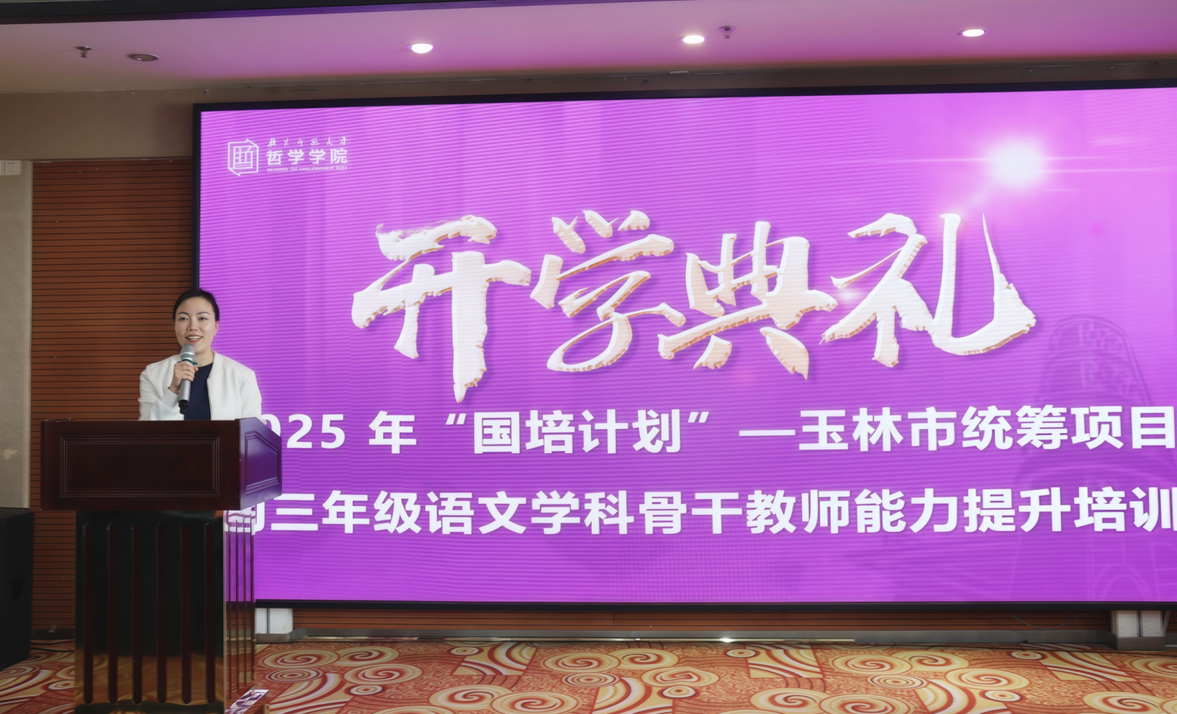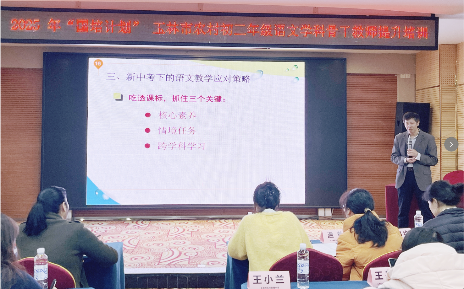 开班典礼庄重而温暖,北京师范大学哲学学院教育培训中心主任王露老师向玉林市教育局的领导、承担本次培训重任的专家学者,以及全体参训教师致以诚挚欢迎与深切敬意。教育是国之大计、党之大计;教师是立教之本、兴教之源。尤其在广袤的乡村土地上,语文教师不仅传授知识,更肩负着以文化人、以文育人的时代使命。初三语文教学,既关乎中考升学,更关乎学生思维品质、审美能力和价值观念的养成。正因如此,本次专项培训意义深远——它不仅是教学技能的锤炼场,更是教育初心的回望地。