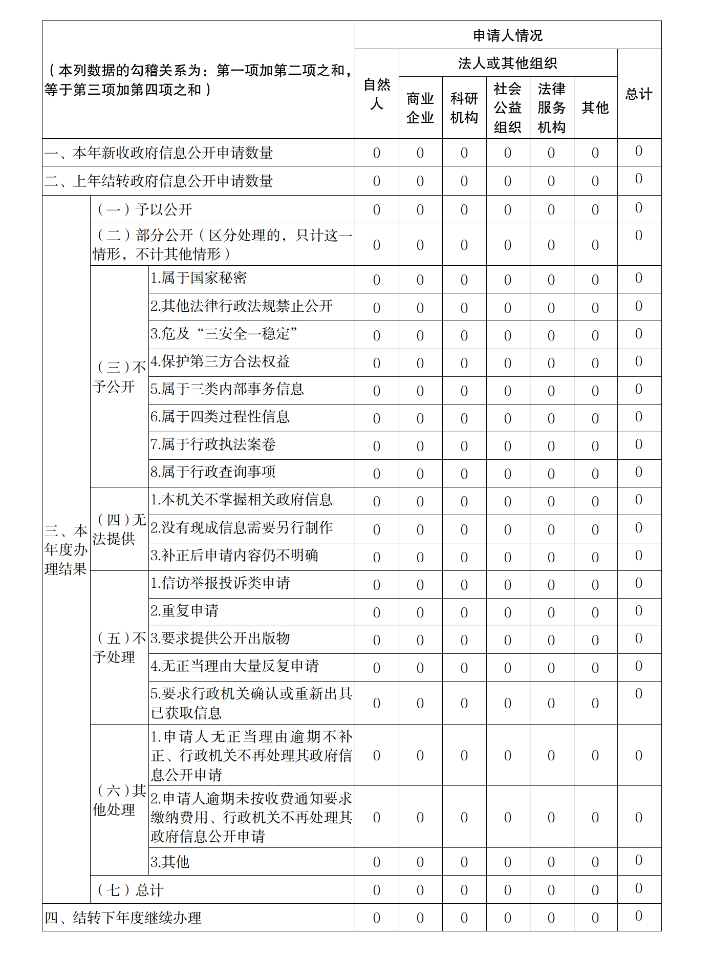 三、收到和处理政府信息公开申请情况