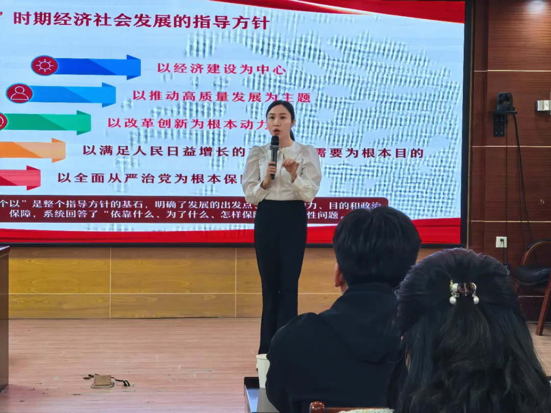 本次培训注重理论与实践结合,既是提升后备力量政治素养和理论水平的“加油站”,也是接下来赴基层宣讲的“战前动员”和“集中备课”。会议邀请玉林市委讲师团特聘教授(专家)杨文婷到场授课,围绕全会精神的核心要义和实践要求进行系统深入解读,并结合教育实际,就如何将全会精神精准、生动、有效地传递到广大师生中间,提供了思路指导和方式方法建议。