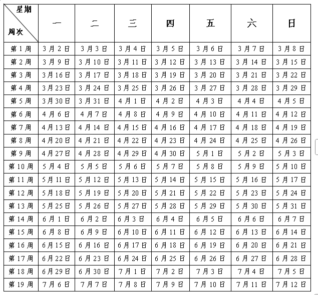 一、校历时间安排
